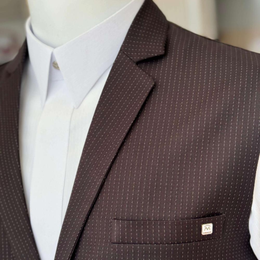 سديري رجالي رسمي بني غامق منقط | تصميم فاخر لأناقة خليجية راقية - متجر المنصة